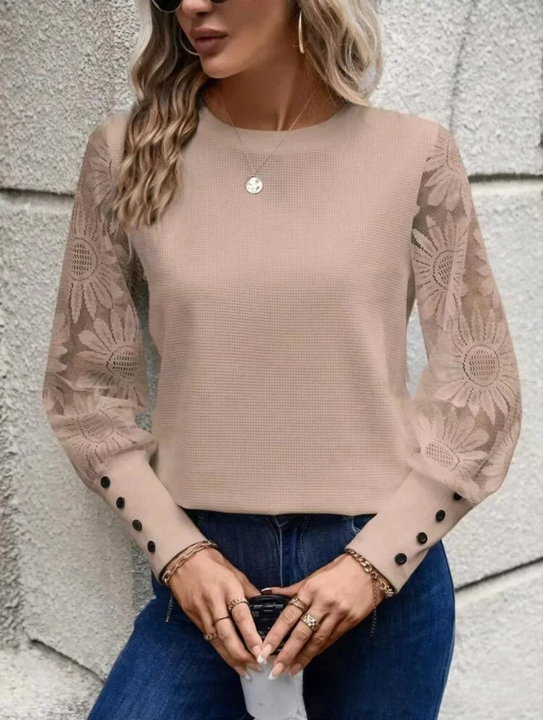 Bluzka Damska Waffle z Dekoltem Okrągłym i Guzikami