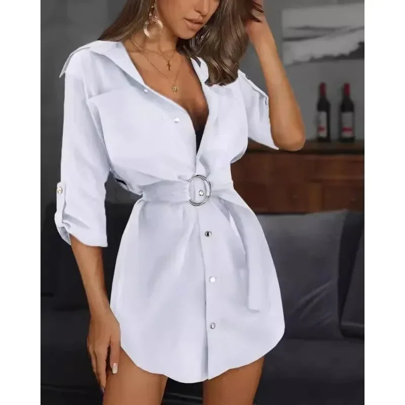 Sukienka Damska Koszulowa Mini z Wiązaniem